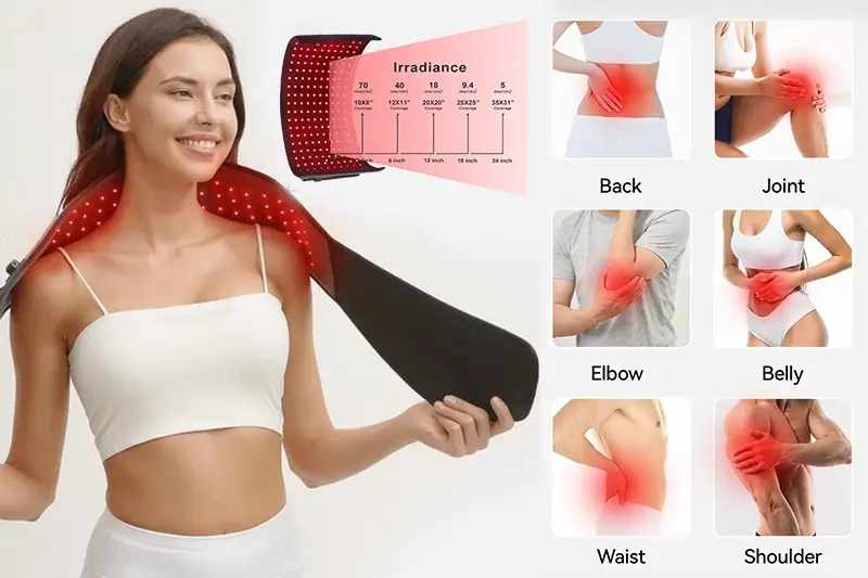 The wrap combines red and near-infrared LEDs for comprehensive coverage, ensuring both superficial and deep tissue healing.